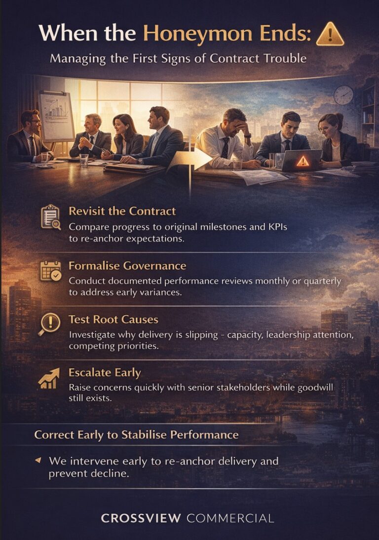 This is the moment that determines whether a contract stabilises into disciplined performance – or begins a gradual decline.